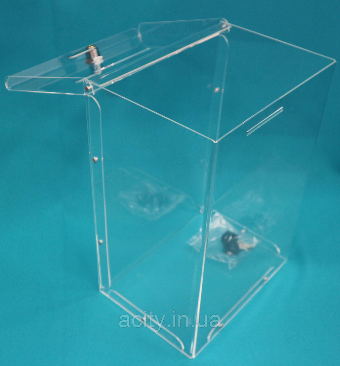 Ящик повністю прозорий. Матеріал виготовлення акрилу. Товщина матеріалу 2 мм
